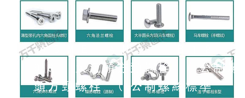 公制螺絲于螺絲型號后方,有時會注明螺絲牙距,但因為標準規范, 通常不提.公制螺絲, 直接標示螺絲長度, 單位為mm. 螺絲之總長度標示, 只計算頭部以下之長度, 不含頭部高度. 但平頭螺絲例外, 其螺絲之總長度標示含頭部高度 方頭螺栓c級gb8-88沉頭方頸螺栓gb10-88沉頭帶榫螺拴gb11-88半圓頭方頸螺栓gb12-88半圓頭帶榫螺栓gb13-88大半圓頭方頸螺栓c級gb14-1998大半圓頭帶榫螺栓gb15-88六角頭鉸制孔用螺栓gb27-88六角頭螺桿帶孔鉸制孔