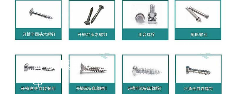 螺栓有:1、方頭螺栓,2、半圓頭方頸螺栓,3、十字槽盤頭螺釘,4、內六角沉頭螺釘,5、方螺母C級,6、蝶形螺母,7、六角頭螺栓,8、十字槽盤頭自攻螺釘。大小有M18、M6、M8、M16、M10、M12、M14、M20等型號。通常用
