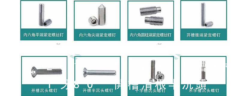 1)開槽普通螺釘多用于較小零件的連接。它有盤頭螺釘、圓柱頭螺釘、半沉頭螺釘和沉頭螺釘。盤頭螺釘和圓柱頭螺釘的釘頭強度較高,瑁在普通的部件連接上;半沉頭螺釘的頭部呈弧形,安裝后它的頂端略外露,且美觀光滑,一般用于儀器或精密機械