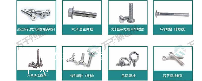 內六角尖端緊定螺釘(尖端機米)、內六角柱端緊定螺釘(柱端機米)、沉頭內六角螺釘(平杯)、半圓頭內六角螺釘(圓杯)、十字槽盤頭機螺釘、十字槽沉頭機螺釘、十字槽大扁頭機螺釘、十字槽盤頭自攻釘、十字槽沉頭自攻釘、十