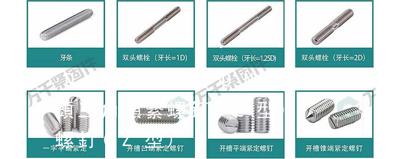 螺栓有:1、方頭螺栓,2、半圓頭方頸螺栓,3、十字槽盤頭螺釘,4、內六角沉頭螺釘,5、方螺母C級,6、蝶形螺母,7、六角頭螺栓,8、十字槽盤頭自攻螺釘。大小有M18、M6、M8、M16、M10、M12、M14、M20等型號。通常用