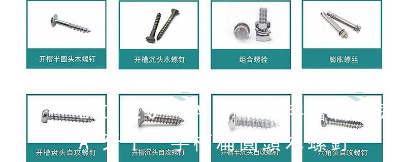 A: Machine Screw: 機(jī)械螺絲 B: Tapping Screw: 自攻螺絲 (分使用于金屬與使用于塑料二種)B-1: Sheet Metal Tapping Screw. (鐵板牙自攻螺絲)B-2: Plastic Tapping Screw. ( 塑料用, 自攻螺絲)C: Wooden Screw : 常用的螺絲的規(guī)格有:公制螺絲、美規(guī)螺絲、英制螺絲。主要分類包括普通螺絲、機(jī)螺絲、自攻螺絲和膨脹螺絲三種。螺絲是利用物體的斜面圓形旋轉(zhuǎn)和摩擦力的物理學(xué)和數(shù)學(xué)原理,循序漸進(jìn)地緊固器物機(jī)件的工具。螺絲是緊固件的通用說法